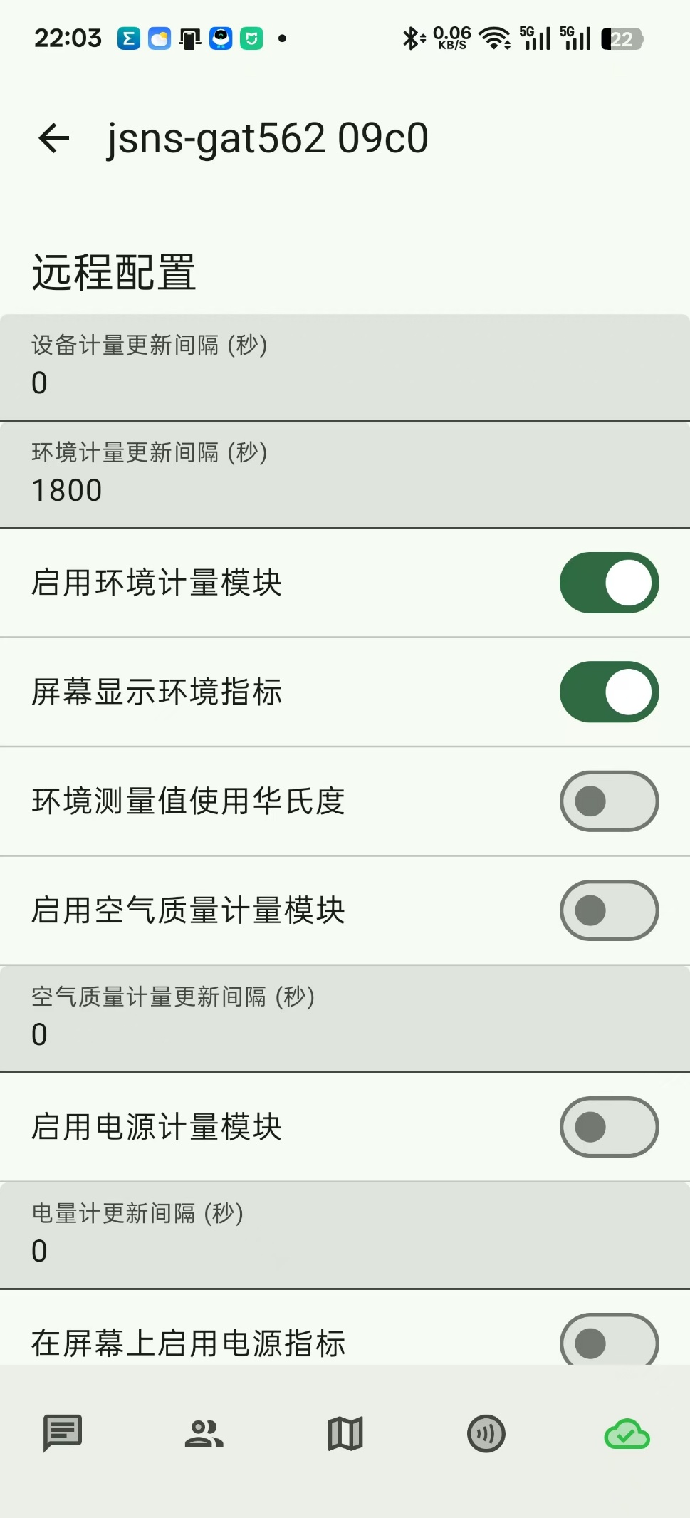 手机app连接设备,点击齿轮图标,下滑在模块设定中找到遥测选项,进入后开启环境计量模块,开启屏幕显示环境指标选项